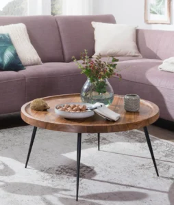 Organic-shaped tables are distinctive because of their asymmetrical, flowing patterns that make them unique and have a creative touch. These tables draw inspiration from nature and foster harmony and a sense of belonging to the surroundings. Moreover, their unusual designs enhance guests’ interest and start conversations making it a good centre table for living room.