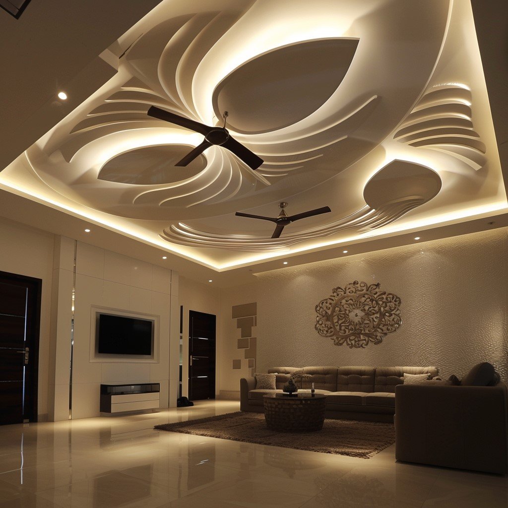 The ideal roof design has the capability of giving a character and personality to a place thus it is both useful and beautiful. The false ceiling for fan 2 strikes the right balance between beauty and functionality, improving air circulation and enhancing the room’s overall aesthetic.