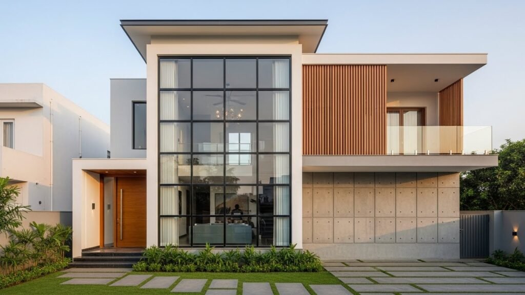 1. Glass House Front Elevation Design