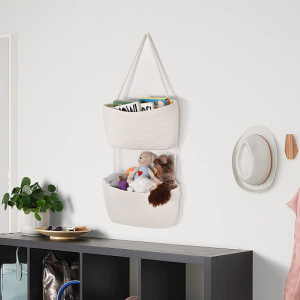 Hang a collection of woven baskets on your walls for an eye-catching display that also serves as storage. The natural material and neutral hues will bring a cozy vibe to the space. Each basket is hand-made from natural materials including cotton, palm, and banana leaf. Each one has a unique pattern, adding depth and character to the living room.