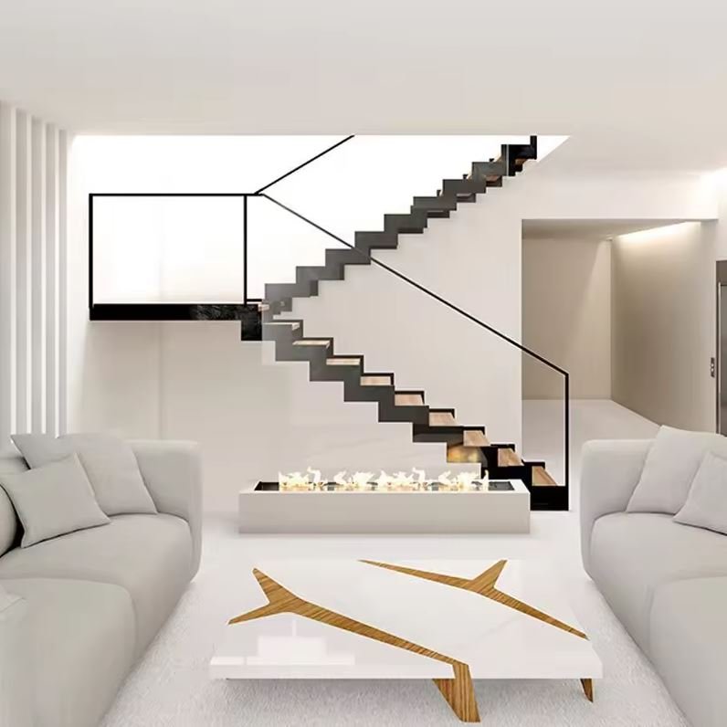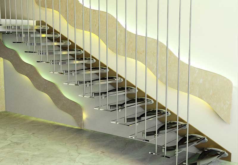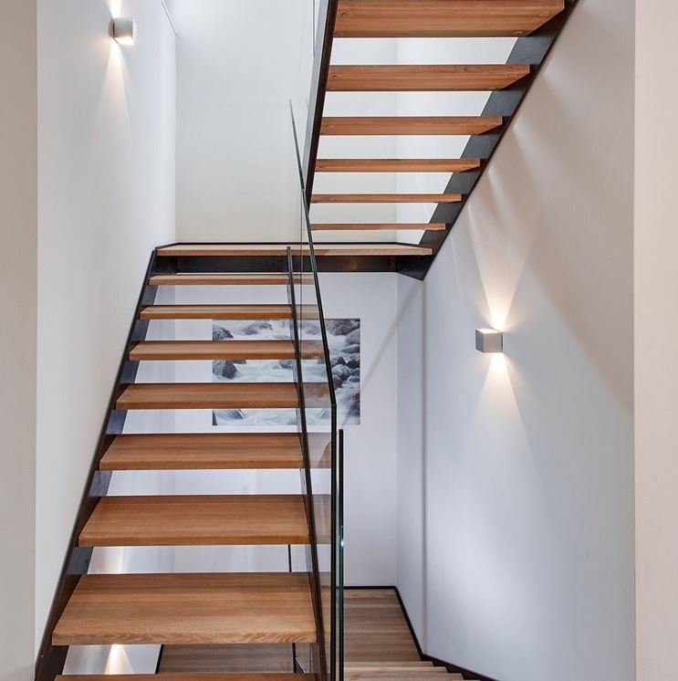 Floating stairs are illusionary, as they give the appearance of floating. Suspended from the wall or supported by spacing structures or supports, floating stairs provide a sense of light and space, so the modern house becomes larger. A variety of materials can be used such as steel, glass or wood, giving it its modern look.