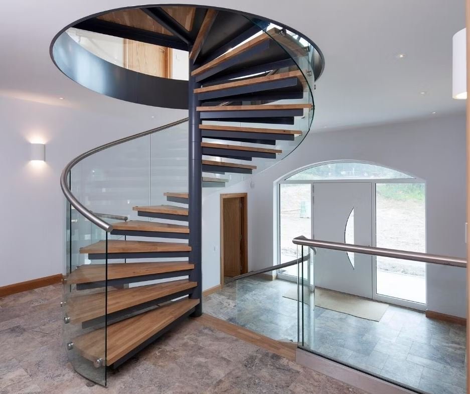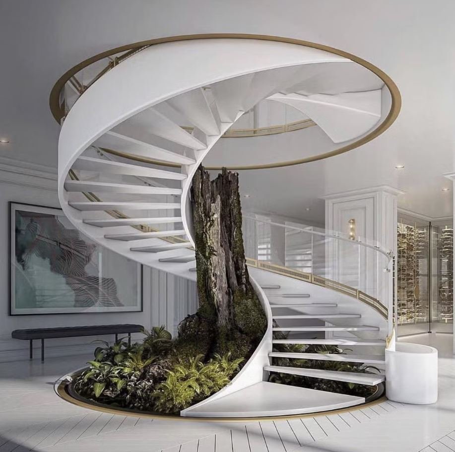 They are graceful open arches and have no central column, generating a continuous, flowing ascent or drop between floors. This design not only enhances aesthetics but also gives an impression of elegance and Refinement. Helical staircases are a fascinating point of interest in modern living and can be a practical as well as an extravagant design element. The architectural possibilities of such a staircase allow light penetration which gives a sense of space, brings a light and luxuriant feel to the interior and enhances the design with a touch of classy elegance.
