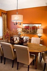 Orange, like the first notes of a vibrant sunset, is energizing while also being calming. Splash some pleasant marigold orange on dining room walls and endow with white touches to develop a French farmhouse feel in your dining room if it demands a perky pick-me-up. Alternatively, take a cue from the Swedes and pair an earthy burnt orange to wooden furniture.